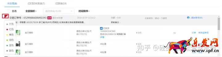 所有訂單默認(rèn)為灰色的旗幟標(biāo)。選擇需要做特殊處理的訂單,鼠標(biāo)放到訂單左上角,即可對(duì)該訂單標(biāo)上不同顏色的旗幟。頁面展示如下: