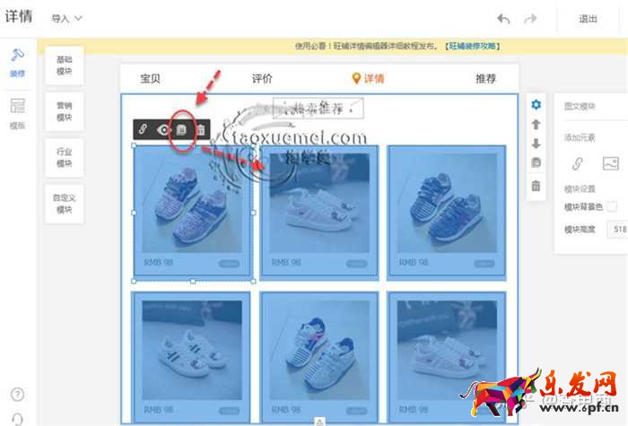 8、如果產品圖的尺寸是一樣的,那么此時點擊工具欄中的【復制】圖標,復制多個熱區,覆蓋到每個產品上面,也可以點擊左側欄上的,【添加元素】中的鏈接圖標進行操作。