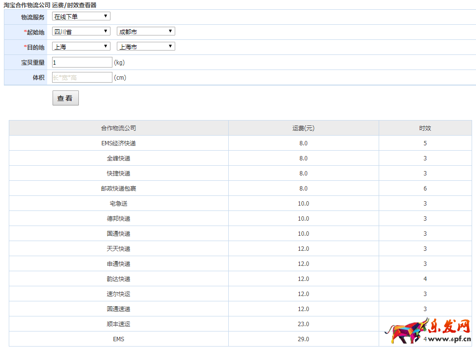 在模板名稱(chēng)后面可以看到【運(yùn)費(fèi)計(jì)算器】的字樣,點(diǎn)擊進(jìn)入則可輸入起始地、目的地、寶貝重量等,系統(tǒng)就會(huì)自動(dòng)查詢(xún)出物流價(jià)格,其中寶貝重量和體積可以只填寫(xiě)一個(gè),如果不確定的話(huà)兩者都填也是可以的。這里的【時(shí)效】數(shù)據(jù)是根據(jù)物流公司過(guò)去一周的平均送貨速度計(jì)算得出的。