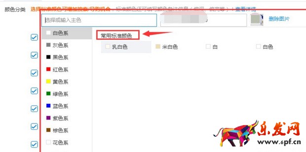 24個自定義選項用完后,顏色選項里還可以添加常用標準顏色,選項內容需要在備注的地方標明一下,因為有字數限制,標注不清楚的,可以在后面添加選項圖片說明一下。
