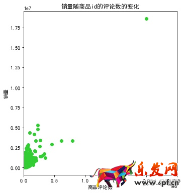 ax1.set_title('銷量隨商品id的評論數的變化',fontsize=12)