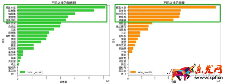 ax2.set_title('不同店鋪的銷量',fontsize=12)