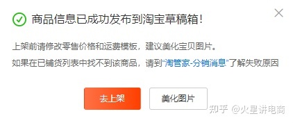 在產品頁面點擊“我要鋪貨”,然后選擇“官方淘寶鋪貨工具”,成功后會提示“商品信息已成功發布到淘寶草稿箱!”這個時候我們再點擊“去上架”,就可以在淘管家頁面看到我們代銷的商品了,然后我們再點擊淘管家頁面的上架按鈕就會跳轉到商品發布頁面。