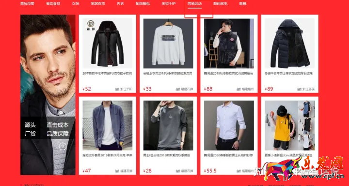 拿男裝來舉例,隨便點開一個產品,進去看,發現其實是鏈接不到他們店鋪的其實找產品找廠家,最好是去首頁搜索如下圖: