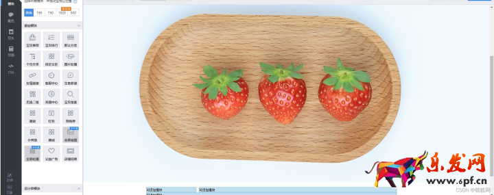 打開裝修后臺首頁的界面,左側有個自定義內容模塊把拖入到右側地方。