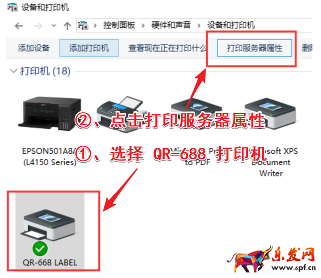 2、選擇「QR-668-LABEL」打印機-點擊打印服務器屬性