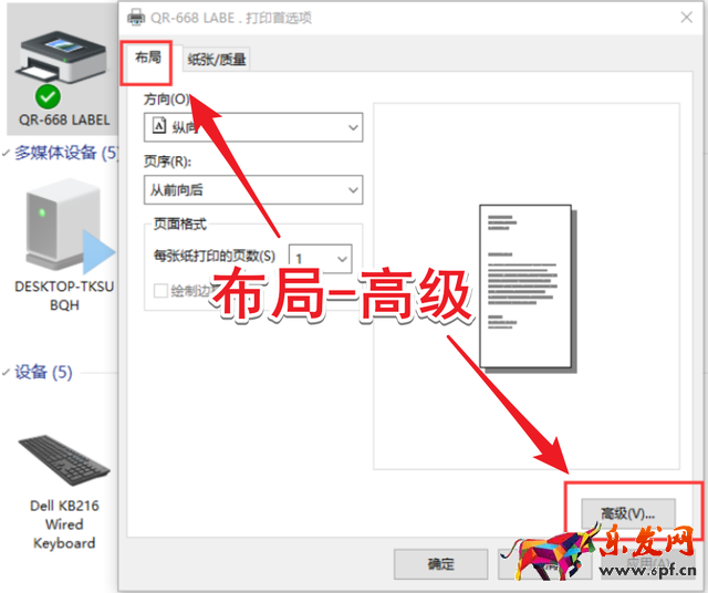 5、設置打印首選項①、右鍵 QR-668 打印機-打印首選項