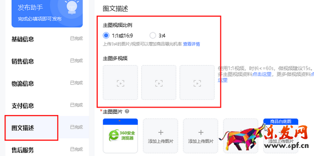 3點擊左側的圖文描述,點擊右側的添加視頻即可。