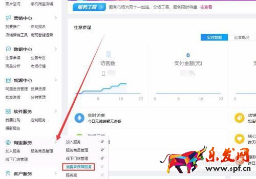 2 2、進入千牛賣家工作臺主頁,下拉頁面找到【淘寶服務】,點擊進入【消費者保障服務】。如圖所示: