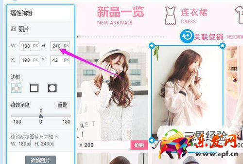 點(diǎn)擊關(guān)聯(lián)促銷的寶貝圖片,左側(cè)圖片屬性顯示的W和H是圖片的寬和高。