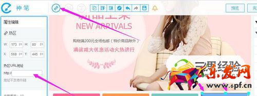 這個模板里面有4個優(yōu)惠券組件,那么怎樣在優(yōu)惠券上面添加鏈接呢?點(diǎn)擊左上角的添加鏈接按鈕,一個藍(lán)色可調(diào)節(jié)的半透明方形框,把方形框拉倒相應(yīng)優(yōu)惠券圖形上,然后調(diào)節(jié)大小。左側(cè)屬性編輯可以輸入優(yōu)惠券地址。