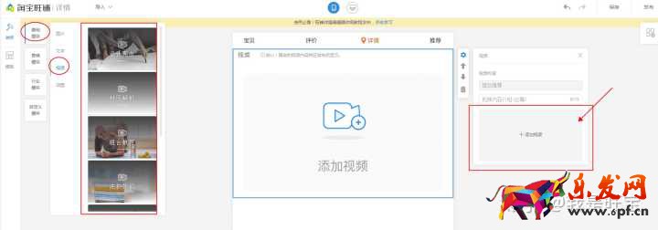 進入寶貝詳情裝修后,點擊添加對應類型的視頻模塊即可