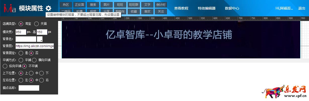 將你剛剛在圖片空間上傳的店招圖片鏈接復制粘貼到下面的“背景圖”位置,同時調整圖片尺寸,此時你的背景圖就出來了
