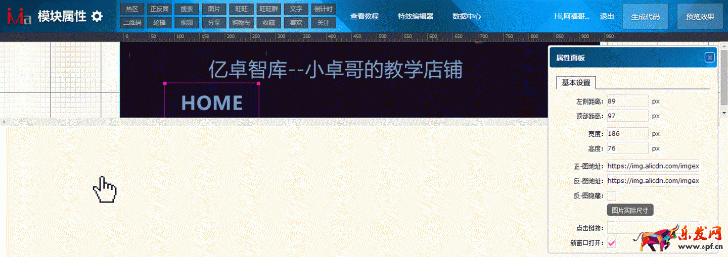 接下來兩步就OK了,第一步點擊“正反面”,彈出圖片后雙擊,就會彈出一個輸入框,將你剛剛在圖片空間里做好的“HOME”和“首頁”兩張圖的鏈接分別復制粘貼進對應的輸入框里,同時別忘記要把跳轉的鏈接添加進來哦。