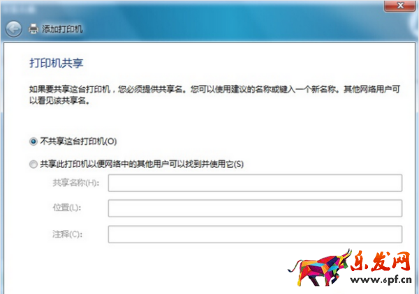 6.驅動程序安裝完成之后,會提示你是否共享此打印機,選擇“不共享這臺打印機”(如下圖):