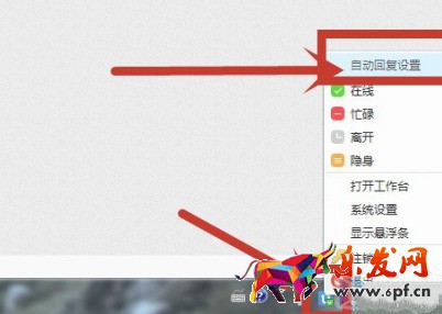 2.鼠標(biāo)移動(dòng)到電腦任務(wù)欄中的千牛圖標(biāo),并右鍵點(diǎn)擊,選擇“自動(dòng)回復(fù)設(shè)置”并進(jìn)入;
