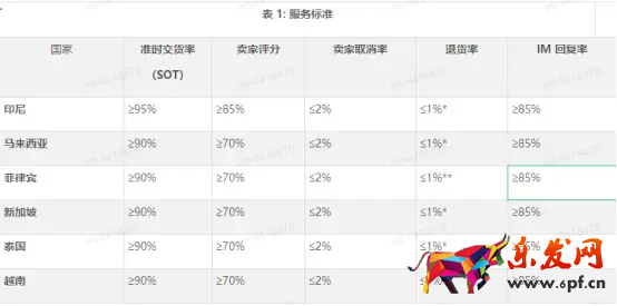 除此之外,賣家還需要連續3個月達到并滿足以下服務標準。服務標準包括賣家在Lazada的時長、賣家評分、取消率、準時交貨率、退貨率和IM回復率。