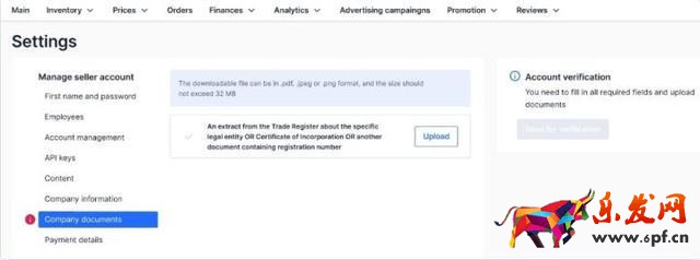 在公司證件 (“Company documents”)欄目中,需要以PDF、JPEG或PNG格式上傳以下證件之一: