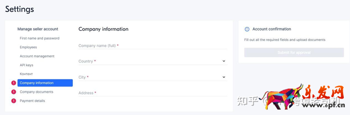 進入店鋪后點擊右上角在個人中心設置 中填寫帶有感嘆號的字段,也就是公司信息、公司文檔、收款信息這三項。如果您沒有父稱,請用破折號“-”代替。