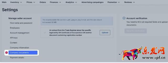 3、公司證件是必填部分,為了能夠提交你的賬戶以供批準。需要在“公司文件”欄目中上傳一個列別的文件,否則將無法提交申請。