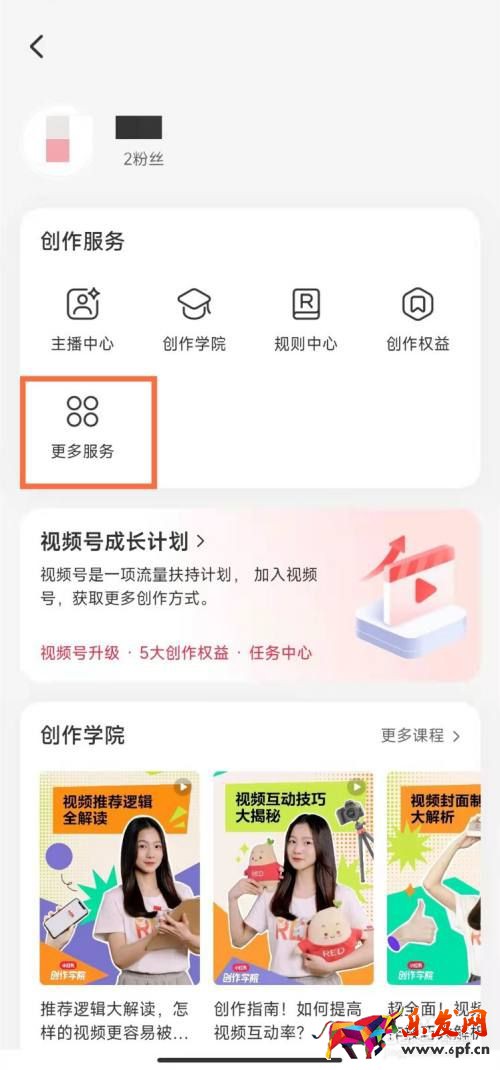 1 開啟小紅書軟件,點擊左上方三條線的圖標,找到創作中心(如圖所示)。