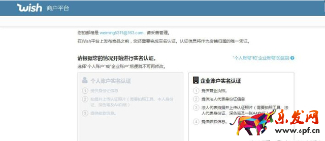 第六步:目前在實名認證頁面 如果申請企業(yè)賬號認證,請準備好企業(yè)營業(yè)執(zhí)照,法人身份證信息。(Wish暫停個人賬戶認證)