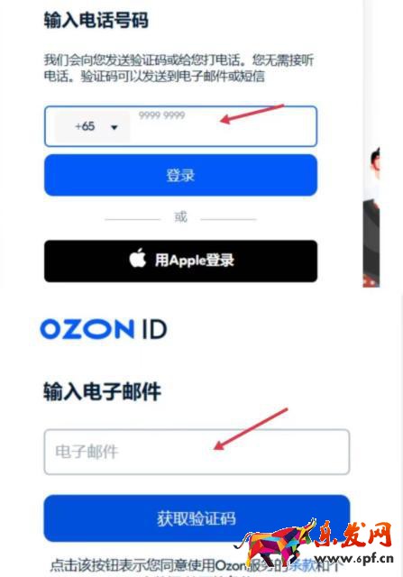 (1)進入ozon網頁后可在左下角切換語言為中文,點擊注冊進入注冊頁面,輸入手機號,手機號用國內的即可,點擊登入,就會跳轉到輸入電子郵件頁面,輸入電子郵件,獲取驗證碼,填寫郵箱收到的驗證碼后,再填一個手機獲取的驗證碼。
