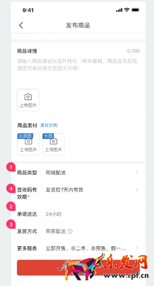 ④、拼多多商家版app發布商品頁面如下(app不支持同城配送區域設置)