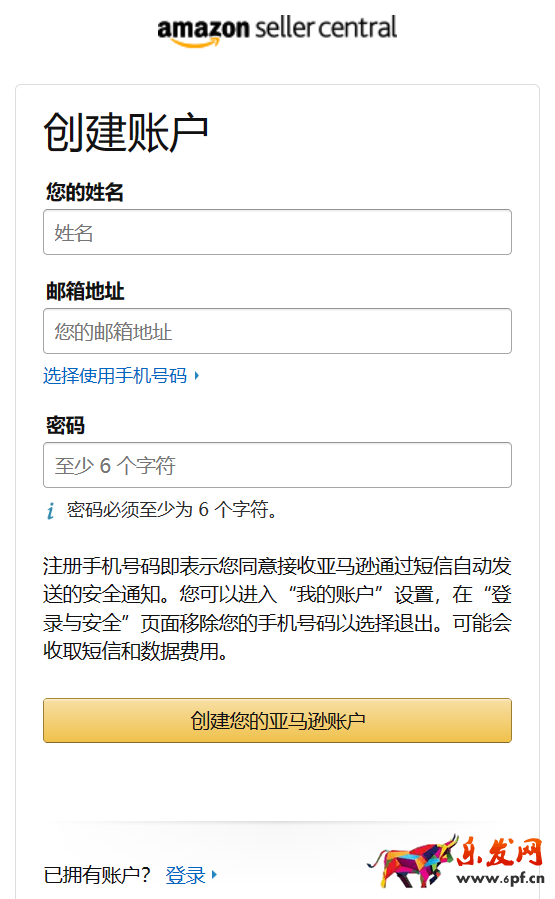 (3)在創建您的amazon賬戶界面中,輸入姓名、郵箱地址和密碼