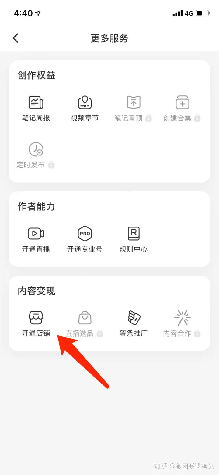 3.內(nèi)容變現(xiàn)板塊選擇開通店鋪