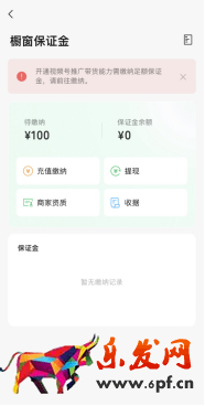 5、沒有繳納保證金是不可以帶貨的,點擊圖中標記的“待繳納”進去繳納保證金,保證金100元,點擊“充值繳納”即可,之后是可以退的。