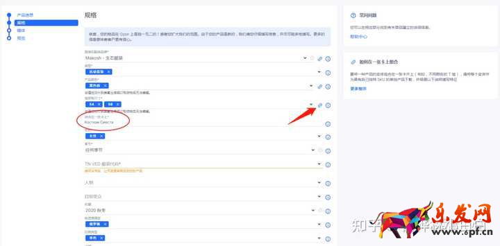 右邊帶有曲別針標識的就是可以合并的內容,如果不帶“*”但有合并產品卡標識的,不想填也沒關系。例如你想合并相同款式的衣服,只是尺碼和顏色不同,那就需要創(chuàng)建多個產品卡,其他地方填寫的內容相同,每個產品卡的需要填寫的尺寸和顏色不同。