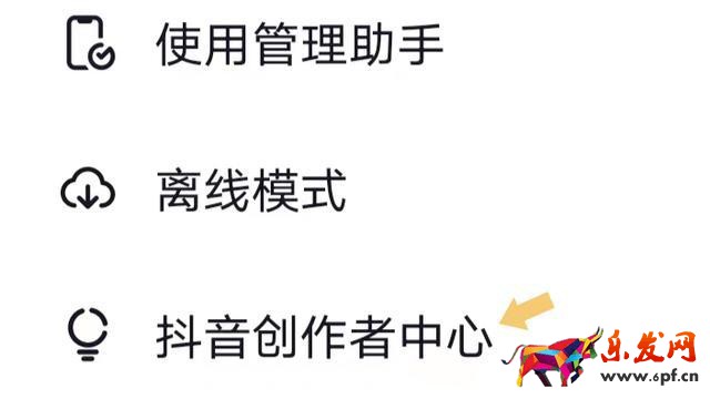點擊三條橫線,在彈出的界面里找到抖音創作者中心選項。如下圖: