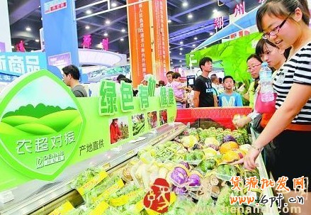 近年來,人們越來越關注食品安全。針對此種現象,在第八屆中博會期間,家樂福、樂購、丹尼斯等多家大型零售企業積極倡導綠色采購理念,展示了產品“從地頭到餐桌”的 農超對接 采購模式。
